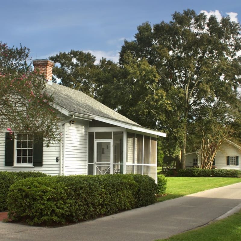 A bed and breakfast cottage is situated in abbeville, close to first presbyterian church.